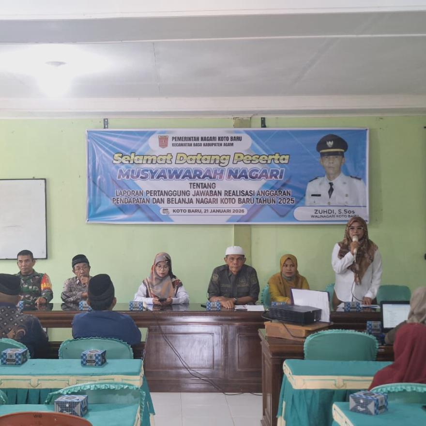 • Musyawarah Nagari tentang Laporan Pertanggung Jawaban Realisasi APBNagari Koto Baru Tahun 2025