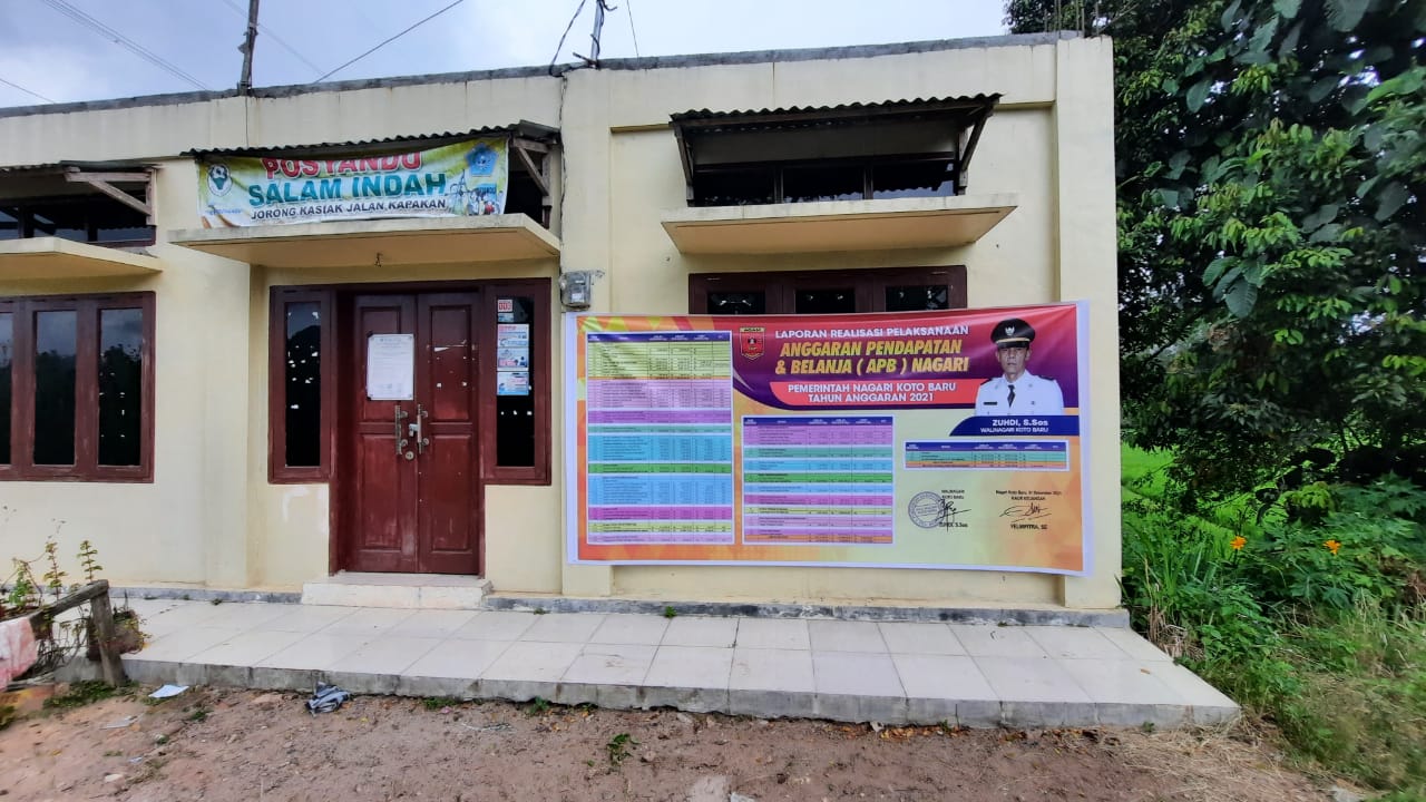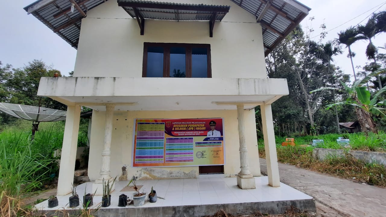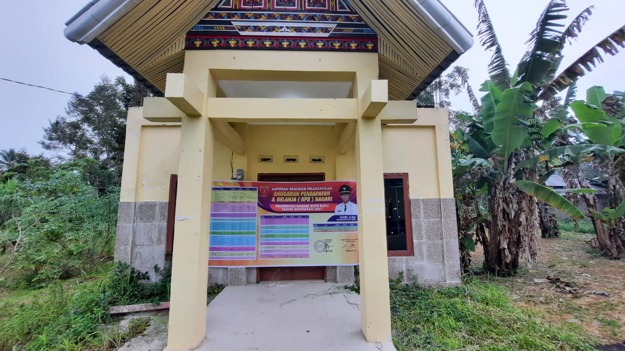 Transparansi Realisasi Laporan APBN Nagari Tahun 2021 yang di Informasikan ke Masyarakat melalui spanduk yang di pasang di Kantor Walinagari dan di Kantor Walijorong Nagari Koto Baru.
