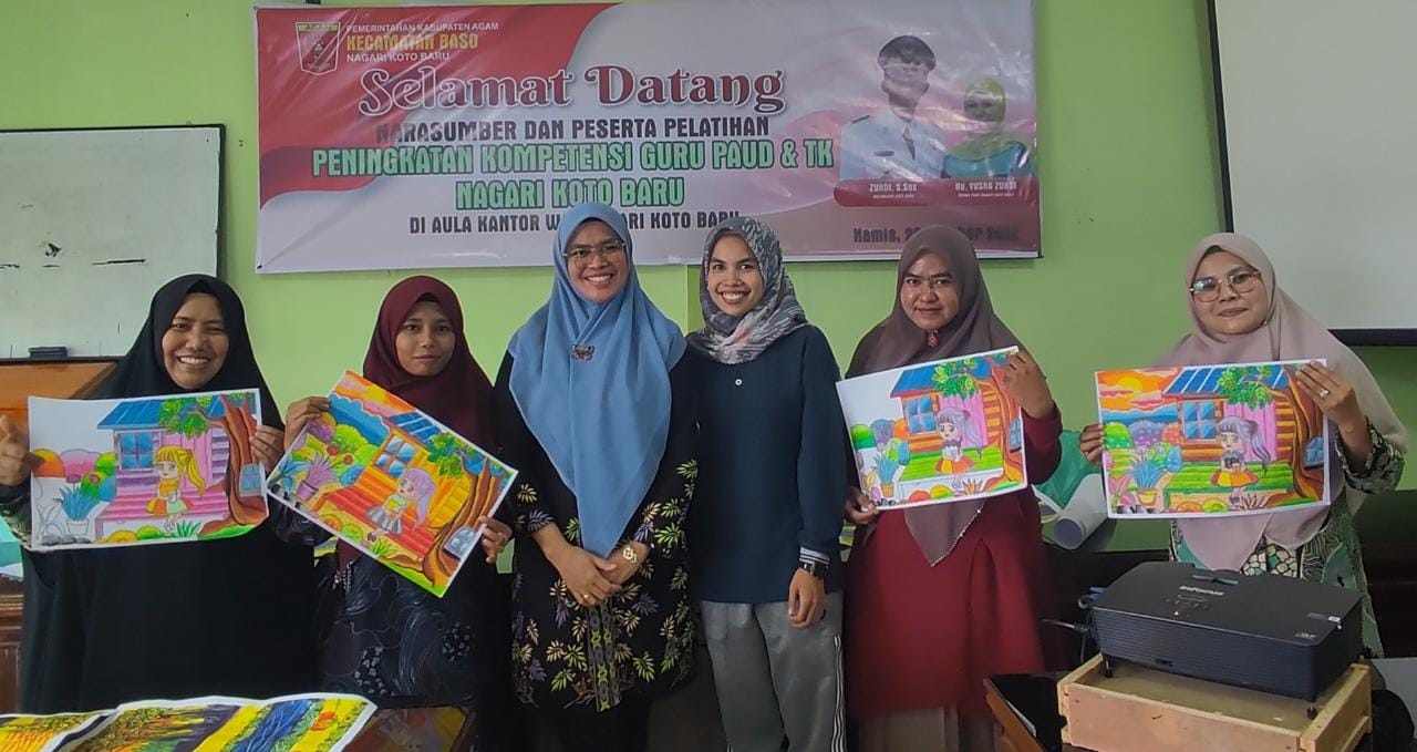 Pelatihan ini diikuti oleh 2 guru PAUD dan 2 guru TK serta Perangkat Nagari dengan narasumber Ibu Kurnia Julita, S.Pd. Tema pelatihan ini ialah cara mewarnai gambar dengan gradasi warna dan teknik melukis menggunakan finger painting. kegiatan ini bertujuan meningkatkan kompetensi guru TK & PAUD dibidang seni sehingga dapat mengajarkan anak-anak didik bagaimana cara menggambar dan mewarnai dengan bagus, indah dan penuh kreativitas sesuai dengan imajinasi anak-anak.