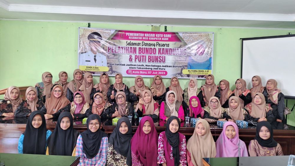 Pada hari Jum'at, 07 Juli 2023 telah dilaksanakan Pelatihan/pembinaan Bundo Kanduang dan Puti Bunsu Tahun 2023 di Aula Kantor Walinagari Koto Baru yang dibuka oleh Bapak Walinagari Koto Baru Bapak Zuhdi, S.Sos dengan narasumber Bundo Rostanailis dan dihadiri oleh Pembina Bundo Kanduang Koto Baru Ibu Yusra, S.ST, Ketua Bundo Kanduang dan anggota serta Puti Bunsu Nagari Koto Baru.