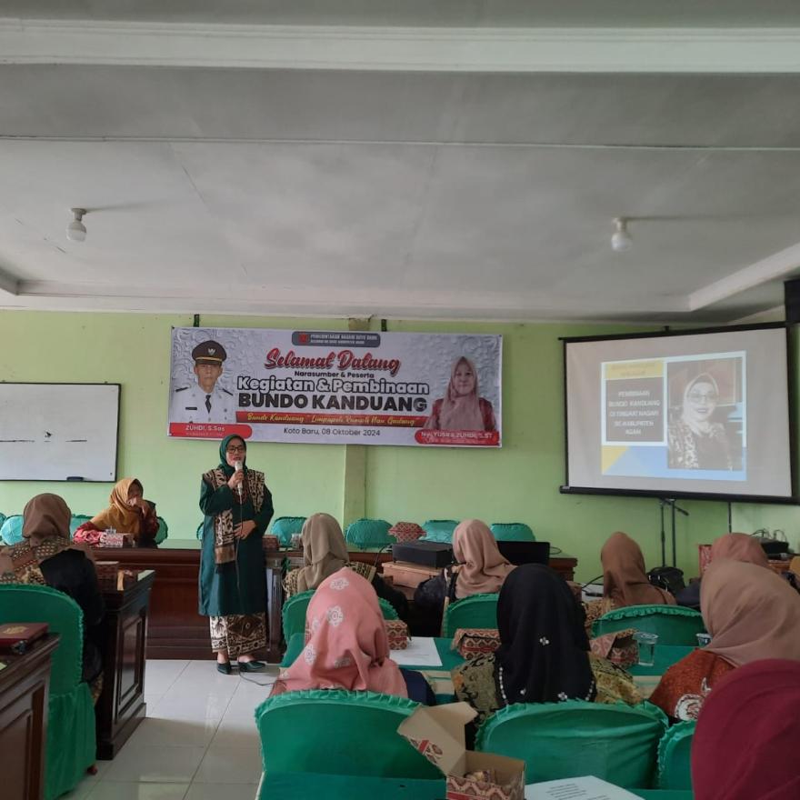 Pada hari Selasa tanggal 08 Oktober 2024 telah dilaksanakan kegiatan pembinaan Bundo Kanduang Nagari yang dihadiri oleh Walinagari Koto Baru Bapak Zuhdi,S.Sos, Camat Baso Bapak Imran Pangaduan,S.Sos, Bundo Kanduang se Nagari Koto Baru dengan narasumber dari Bundo Kandung Kecamatan Bundo Nurlaili dan Ketua Bundo Kandung Kabupaten Agam Bundo Asnita Thamrin,S.Sos.