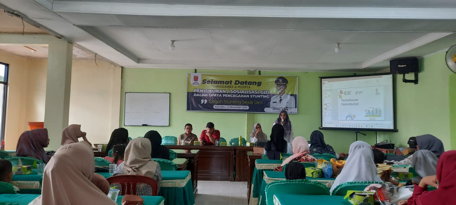 Pada hari Rabu tanggal 20 November 2024 telah dilaksanakan Sosialisasi/Penyuluhan Gizi dalam Upaya Pencegahan Stunting dengan narasumber dari Puskesmas Baso Ibu Mega Purnama,A.Md.Gz dan Ibu Meri Testi,A.Md Keb. Kegiatan dibuka langsung oleh Camat Baso yang diwakili Oleh Sekretaris Camat Bapak Effendi Idris dan dihadiri oleh Walinagari Koto Baru Bapak Zuhdi,S.Sos,Ketua Bamus diwakili oleh Bapak Abdul Karim,Ketua TP PKK Nagari Koto Baru diwakili oleh Sekretaris TP PKK Nagari Ibu Leni Kurniati,A.Md,Perangkat Nagari,Kader Posyandu, Ibu Hamil, Ibu Baduta dan Ibu Balita Nagari Koto Baru.