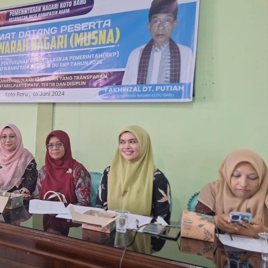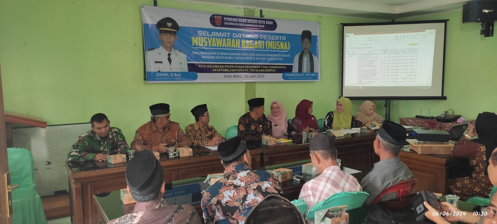Dalam rangka Penyusunan Rencana Kerja Pemerintah (RKP) Nagari Koto Baru, telah dilaksanakan Musyawarah Nagari ( Musna ) Perencanaan Pembangunan Nagari pada hari Kamis tanggal 6 Juni 2024 yang diselenggarakan Bamus Nagari yang dihadiri oleh Bapak Camat yang diwakili oleh Kasi Kesos Ibu Dra. Devi Rina, Kepala Puskesmas Ibu Drg. Marliny, wakil-wakil kelompok masyarakat, Jorong, tokoh masyarakat, Lembaga Nagari serta unsur lain yang terkait di Nagari sebagaimana tercantum dalam daftar hadir terlampir.