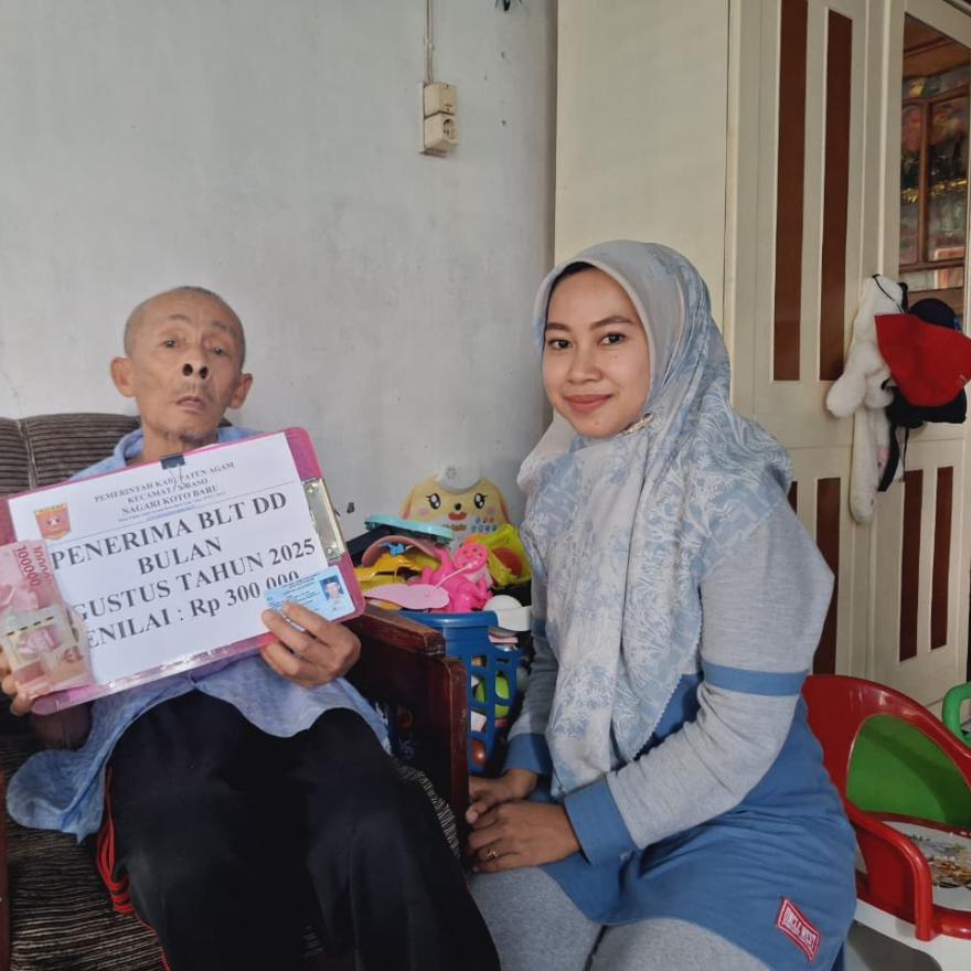 Pada hari Rabu tanggal Enam bulan Agustus tahun Dua Ribu Dua Puluh Lima, telah diserahkan BLT-DD untuk bulan Agustus kepada keluarga penerima manfaat dalam rangka penanganan kemiskinan di Nagari Koto Baru senilai Rp. 300.000,- (tiga ratus ribu rupiah) sebanyak 41 KPM sebagaimana dengan bukti daftar tanda terima terlampir.